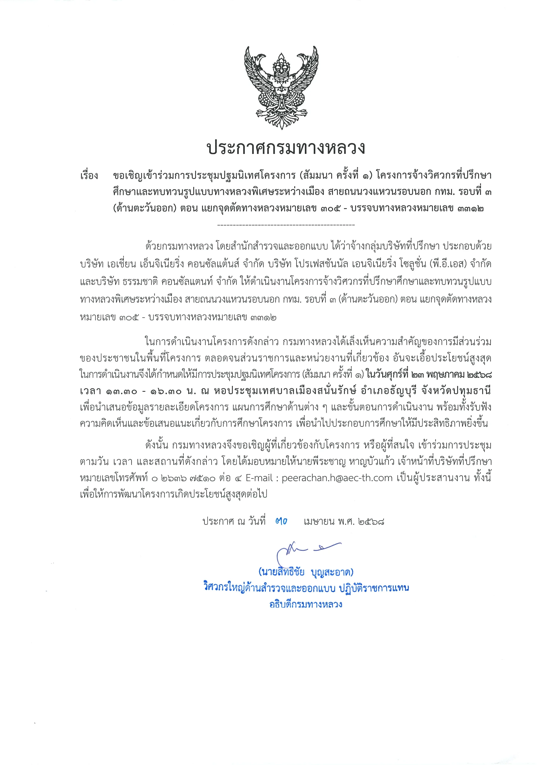 ขอเชิญเข้าร่วมประชุมปฐมนิเทศโครงการ (สัมมนา ครั้งที่ 1)